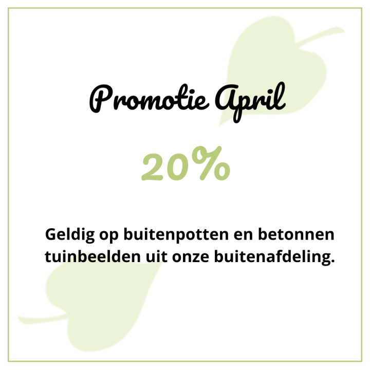 Mis nooit meer een mooie aanbieding door deze pagina goed in de gaten te houden of schrijf je in voor onze nieuwsbrief. Zo blijf je op de hoogte van de nieuwste kortingen en acties. Kom gezellig langs en laat je inspireren door onze sfeervolle tuinsettingen en de nieuwste groentrends.