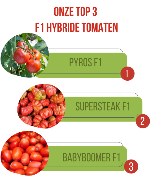 F1 Hybride tomaten: sappig, grotere opbrengst en goed resistent tegen ziekten